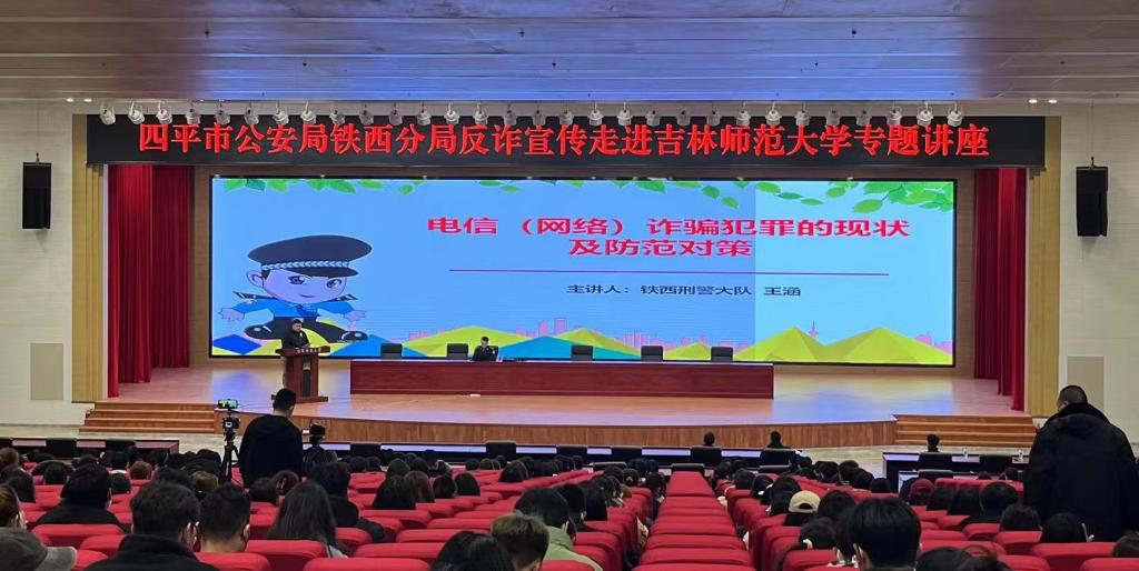 3月1日,学校和四平市公安局铁西区分局在bat365实习实训楼报告厅共同举办“反电信诈骗”专题讲座。学校相关部门工作人员、铁西区公安分局民警以及学生代表450人聆听讲座。