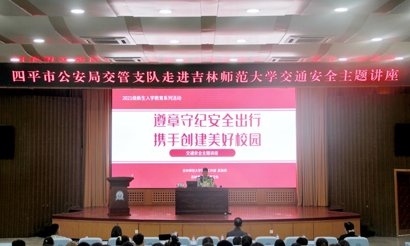 9月24日,2021级新生交通安全教育讲座在图书馆报告厅举行,学校邀请四平市公安局交通管理支队铁西大队副大队长王利作专题讲座。相关部门负责人、2021级新生代表聆听讲座。