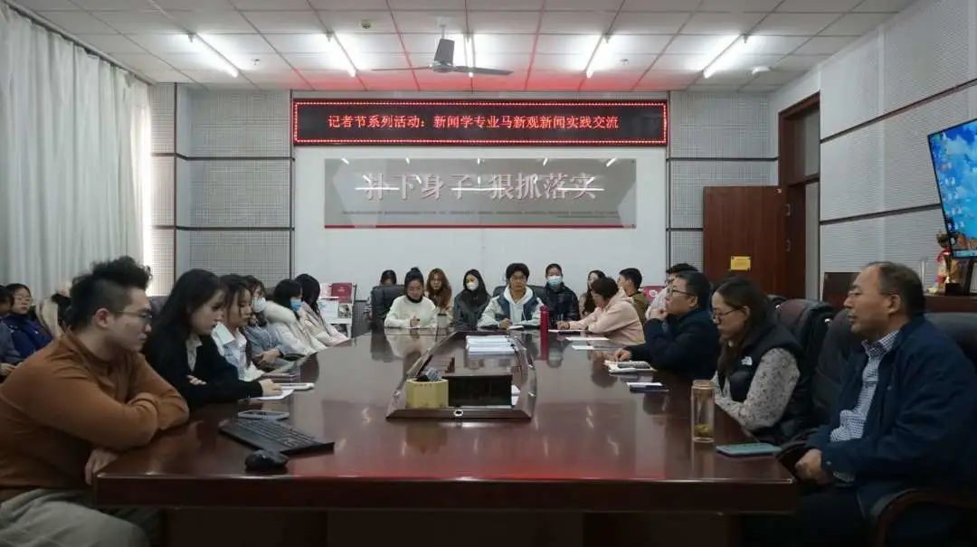 11月11日,bat365平台官网新闻与传播学院举行新闻学专业马新观新闻实践交流活动,新传学院院长夏维波,新闻学专业系主任王晓楠,新传学院教师王鹏、赵洪霞、王嘉曼及部分新闻学专业学生出席活动。交流活动由王晓楠主任主持。