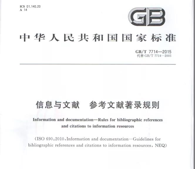 《文后参考文献著录规则》(GB/T 7714-2015)