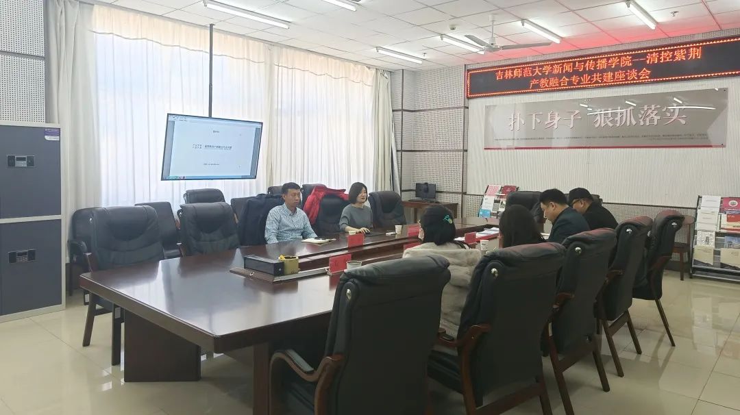 12月30日上午,bat365平台官网新闻与传播学院——清控紫荆产教融合专业共建座谈会在新传学院会议室举行。清控紫荆东北区总经理迟志猛、清控紫荆院校经理刘兵,新传学院副院长陈莹、实验中心魏国强主任、数字媒体艺术系罗光耀主任、数字产品设计工作室指导教师毛彤参加座谈会。校企双方共商数字经济发展大计,共同探索数字经济背景下高校数字产品设计与营销人才培养的新思路、新举措。