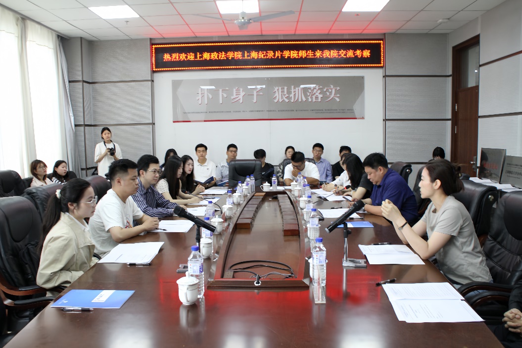 座谈会上,魏国强副院长对上海政法学院上海纪录片学院师生的到来表示热烈欢迎,并介绍了学院的发展历程,教育理念及办学成果等方面的情况;郝蕊主任对广播电视编导专业的课程建设、发展特色等进行介绍。上海政法学院上海纪录片学院安康老师和马可老师对其专业实习实践、纪录片创作等情况进行交流。