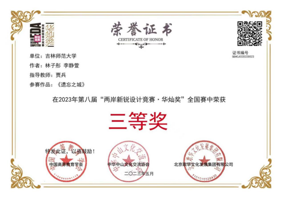 A类三等奖《遗忘之城》第八届“两岸新锐设计·华灿奖”国赛,中国高等教育学会 2023/5/1