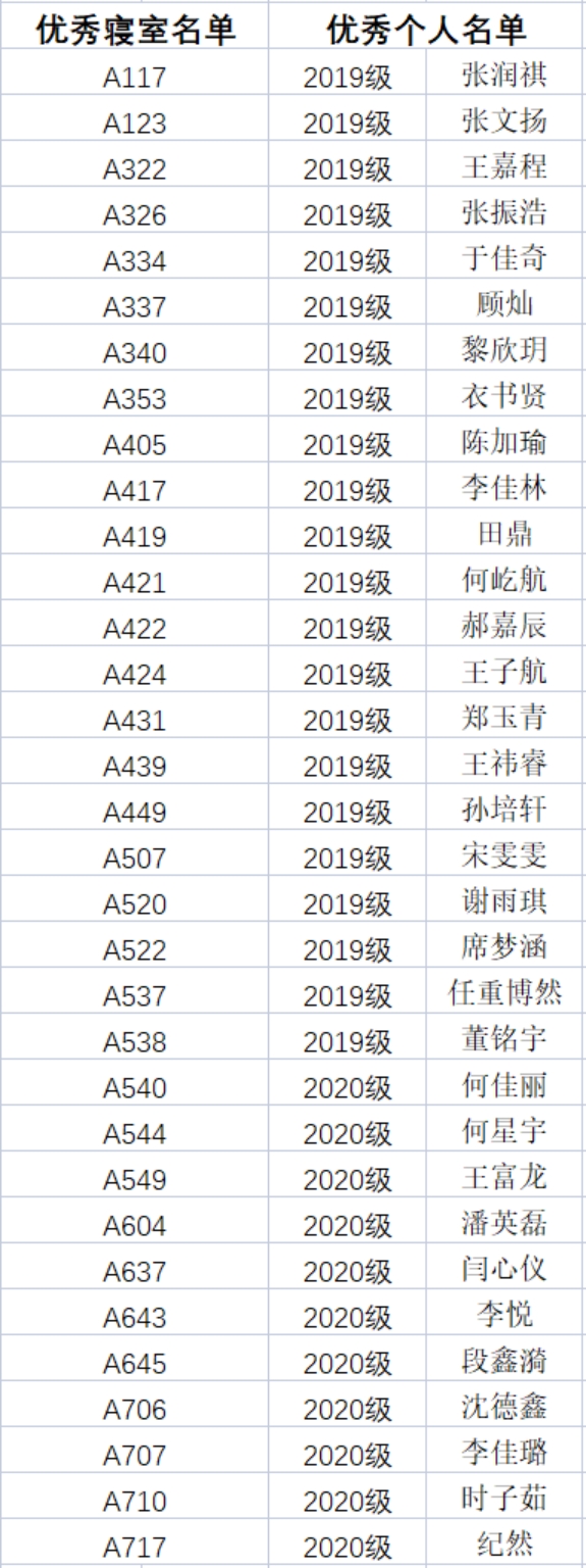 积极响应“讲卫生,抗疫情”的倡议,有效有序组织寝室卫生建设,在五个评比项目中表现突出。