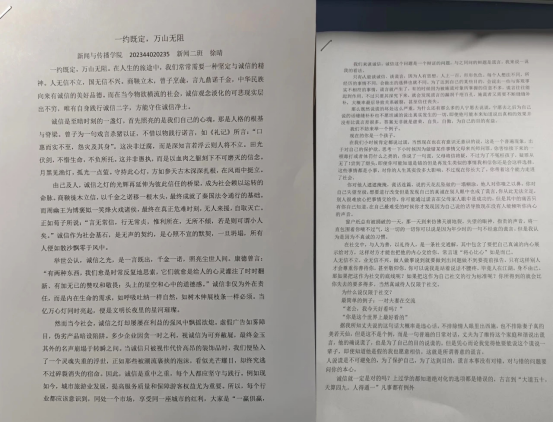 活动一经发起,便得到同学们的热烈响应一篇篇饱含真情的文字纷至沓来,字里行间流淌着对“诚信”的深刻思考与真切感悟。征文展示