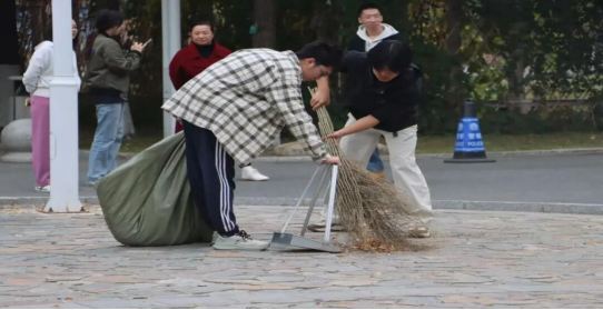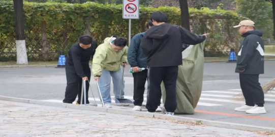 课程期间,在学院教师的带领下,学生们以小组为单位,有序投入到校园环境美化劳动中。同学们分工协作,相互配合,共同清扫了校园人行通道、清理灌木丛中的杂物、拔除杂草、捡拾垃圾及清扫落叶。通过亲身实践,学生们不仅提升了劳动技能,更在协作中增强了团队意识和社会责任感。
