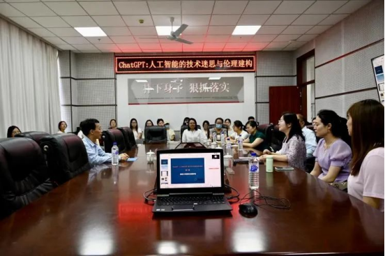 6月25日上午10点,bat365平台官网新闻与传播学院咸云讲坛系列讲座第二十八讲于研发大厦712室开讲。本次讲座由暨南大学新闻与传播学院副院长、暨南大学新媒体文化研究中心主任曾一果教授主讲,主题为《ChatGPT:人工智能的技术的迷思与伦理建构》。夏维波院长、田静副院长、部分老师以及研究生参加了本次讲座。