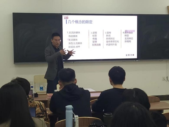 通过吉林日报等媒体的具体案例,李主任随后向同学们分享了媒体内部新老媒体融合的普遍做法及主流新媒体的生存困境。他讲道,主流媒体融合发展的途径主要为:借助“造船出海”与“借船出海”布局终端;建立中央厨房及技术中台再造流程;经营报纸、网站、视频账号、两微账号、APP等,打造全媒体矩阵;探索一体化发展道路,创新管理。同时,他指出主流新媒体仍存在“融而不合”“极不均衡”“有体无量”“不精不强”的问题,尤其是处于“上不接天线,下不接地气,拼不过资源,比不了技术资金”的尴尬位置的省市级新媒体。