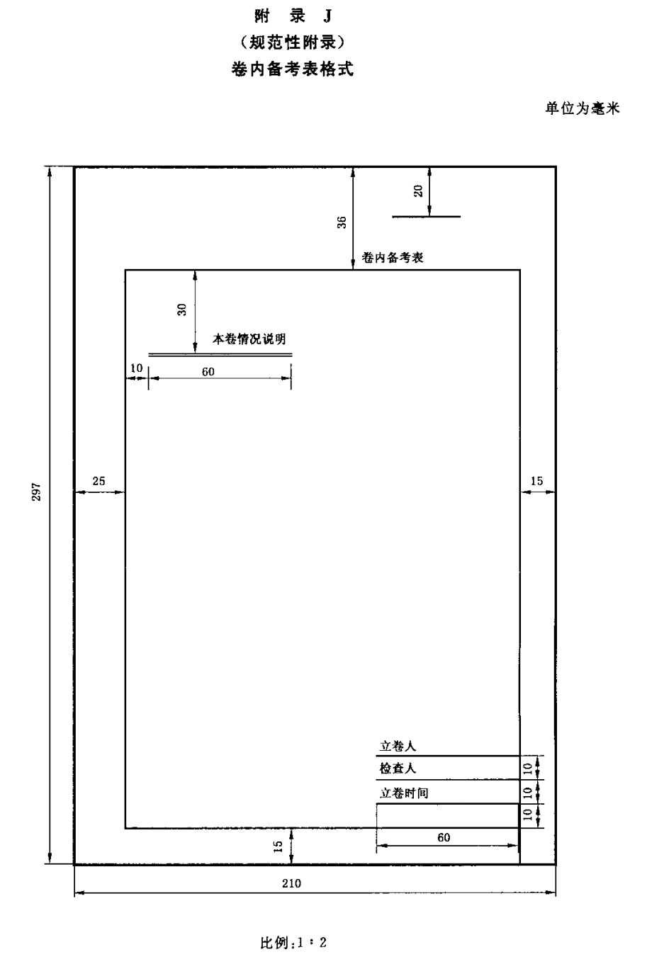 5.1 卷内备考表外形尺寸及页边与文字区尺寸