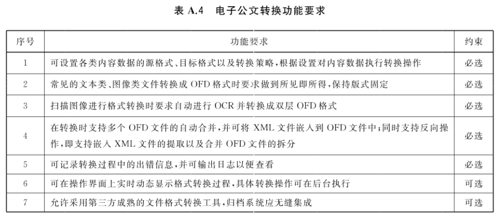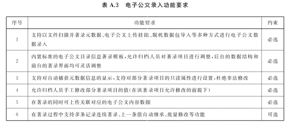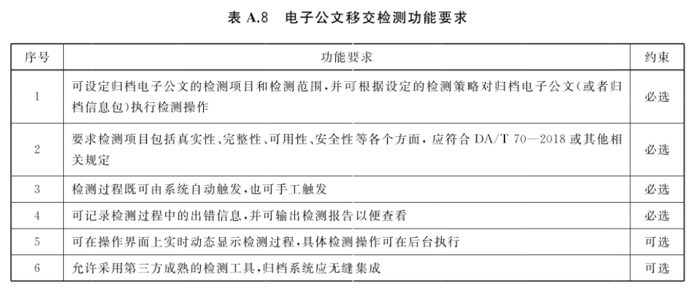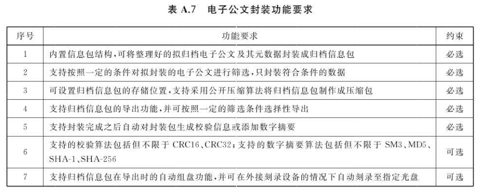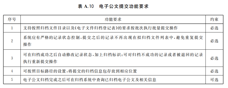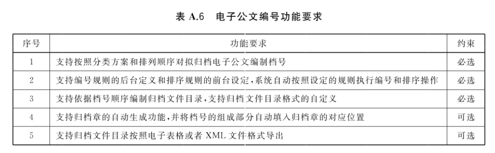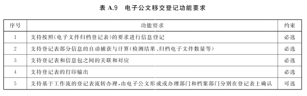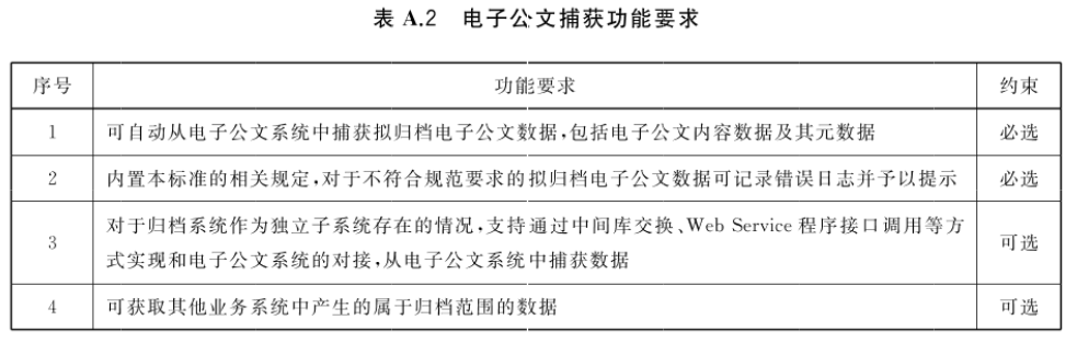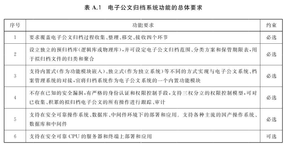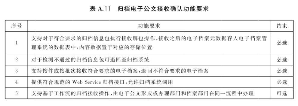 5.7 应设计电子归档系统满足电子公文归档过程的管理要求,功能要求见附录A,其他未尽描述可参考GB/T 29194—2012。应设计电子公文系统、电子档案管理系统的归档接口,实现系统对接,接口要求见附录B。
