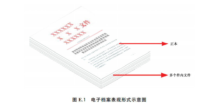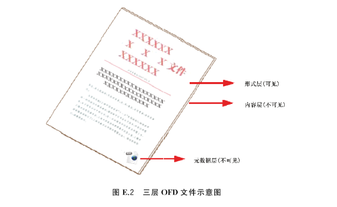 如上所述,组成一份电子档案的每一个OFD文件可包含形式、内容、元数据三个层次,见图E.2。