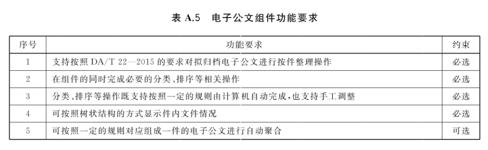 a) 组件:电子公文一般以件为单位进行整理,件内文件的构成以及件内文件排序应符合DA/T22—2015的要求;