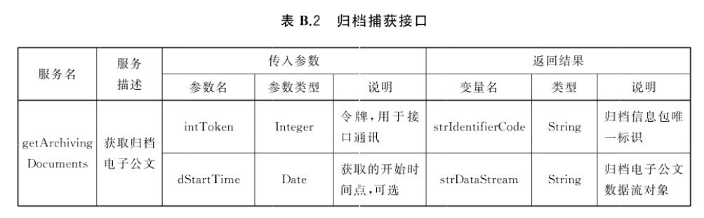 基于Web Service服务调用的归档捕获接口描述见表B.2。