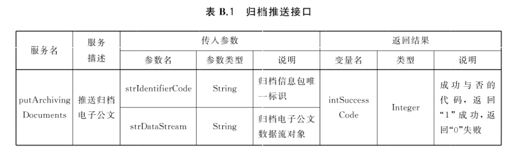 基于Web Service服务调用的归档推送接口描述见表B.1。