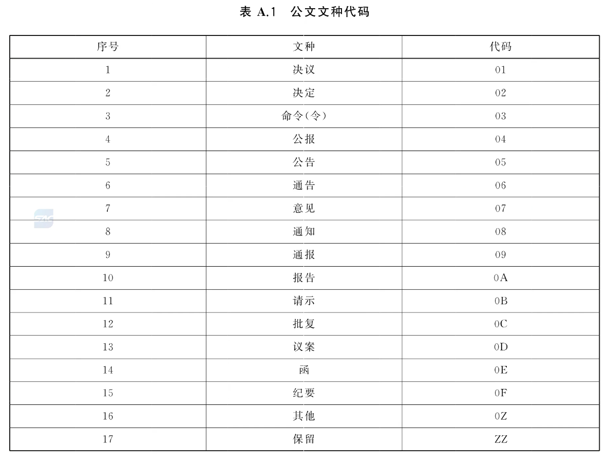 电子公文文种代码见表 A.1。表中未列出的公文文种代码可参照表 A.1 编号。