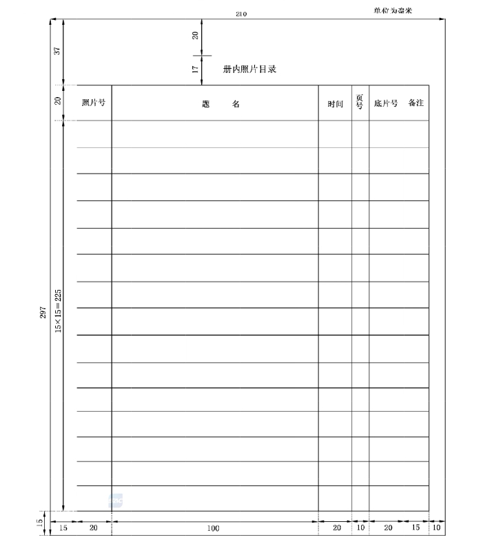 5.3.4.1. 底片册一般由 297 mm × 210 mm大小的若干芯页和封面、封底组成。