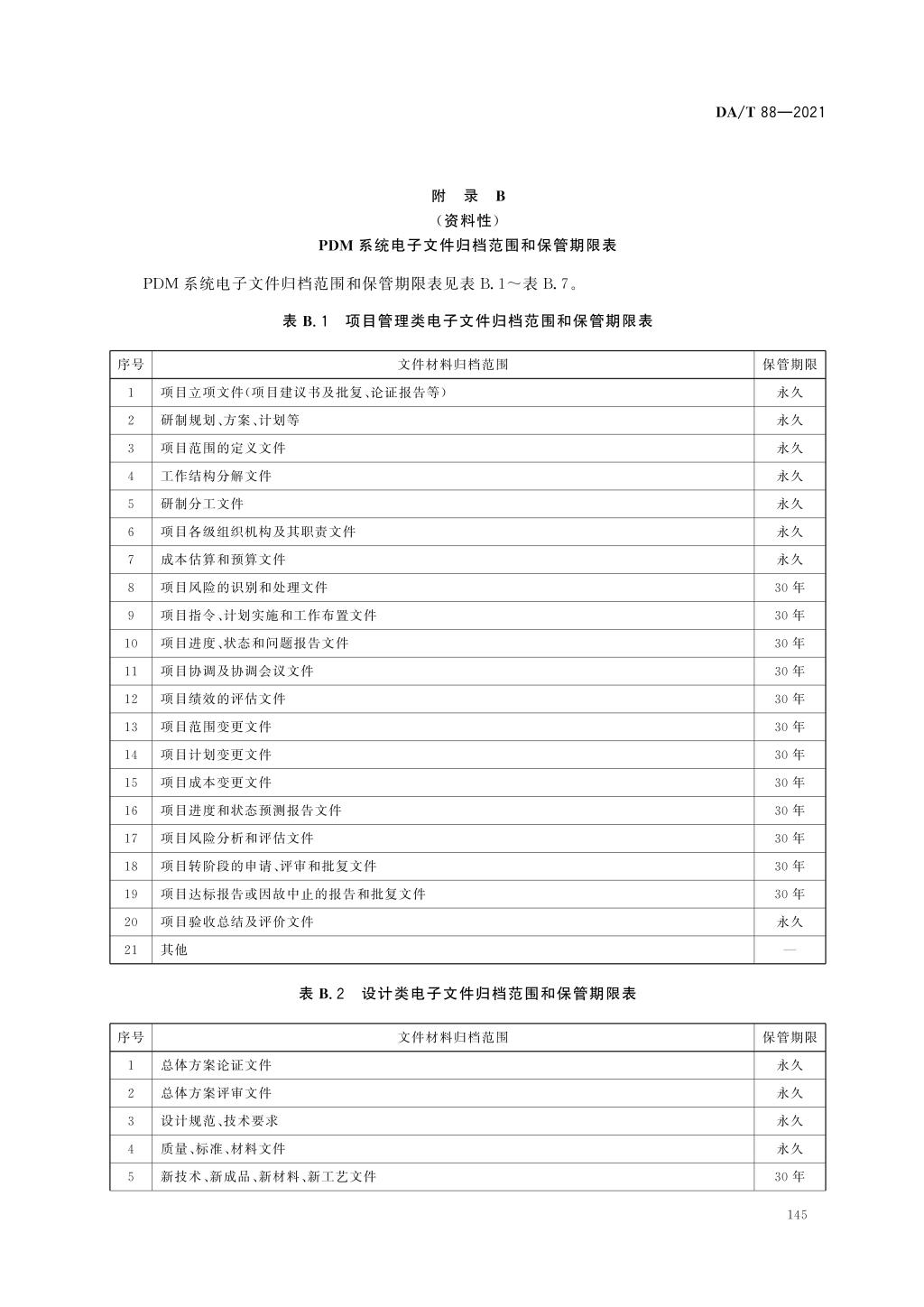 4.1.4 应对PDM 统中电子文件的情况进行综合调查,制定归档方案、保管期限表、元数据方案、访问控制规则/利用规则等规范,据此开展PDM系统电子文件归档与电子档案管理工作。