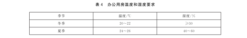 5.1.5 办公用房温度和湿度应符合表4的要求。