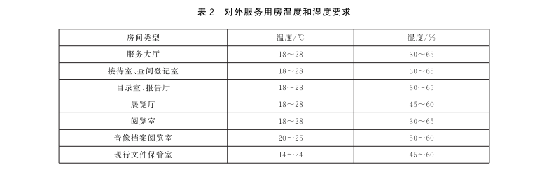 5.1.4 档案业务和技术用房温度与湿度应符合表3的要求。