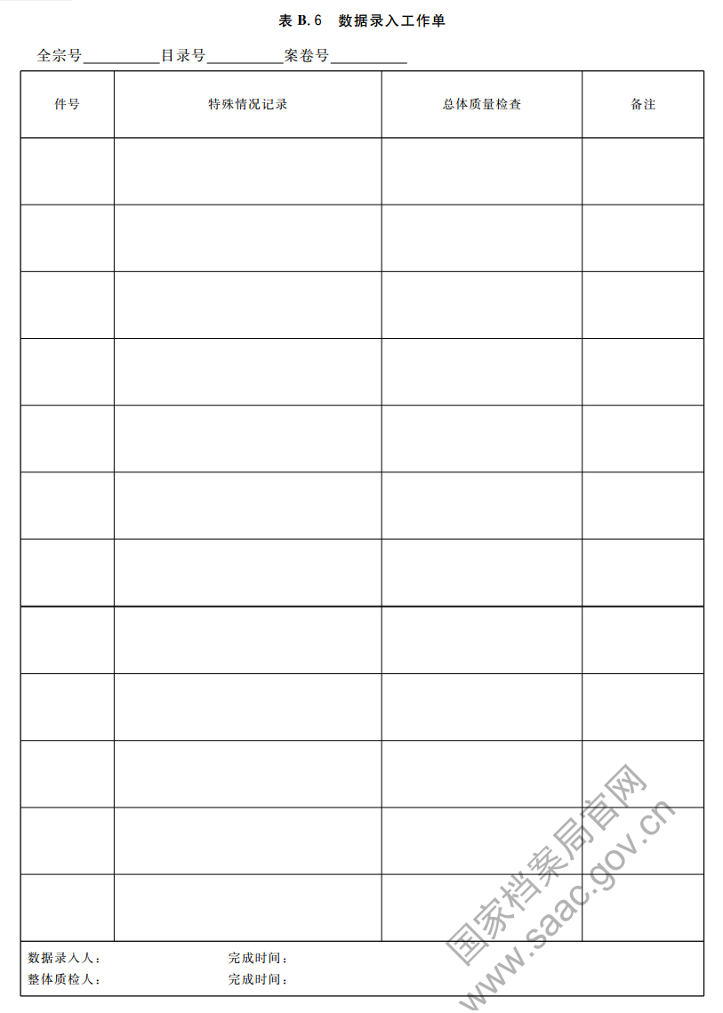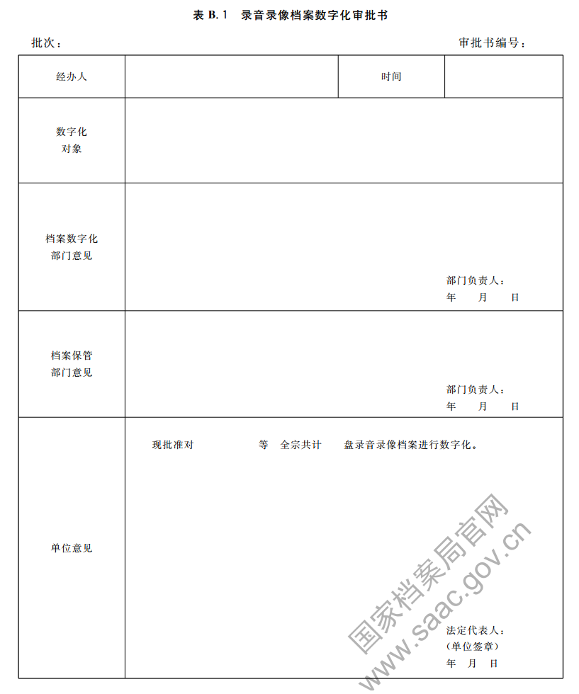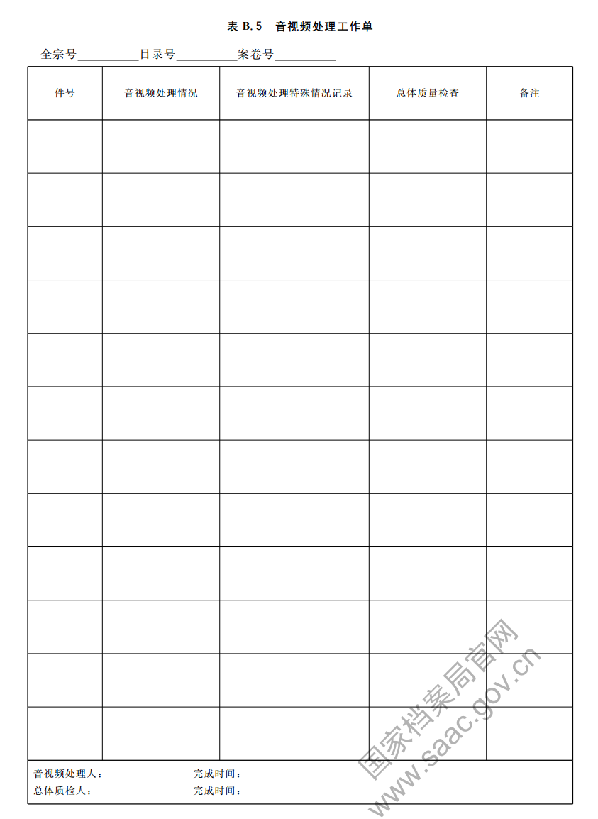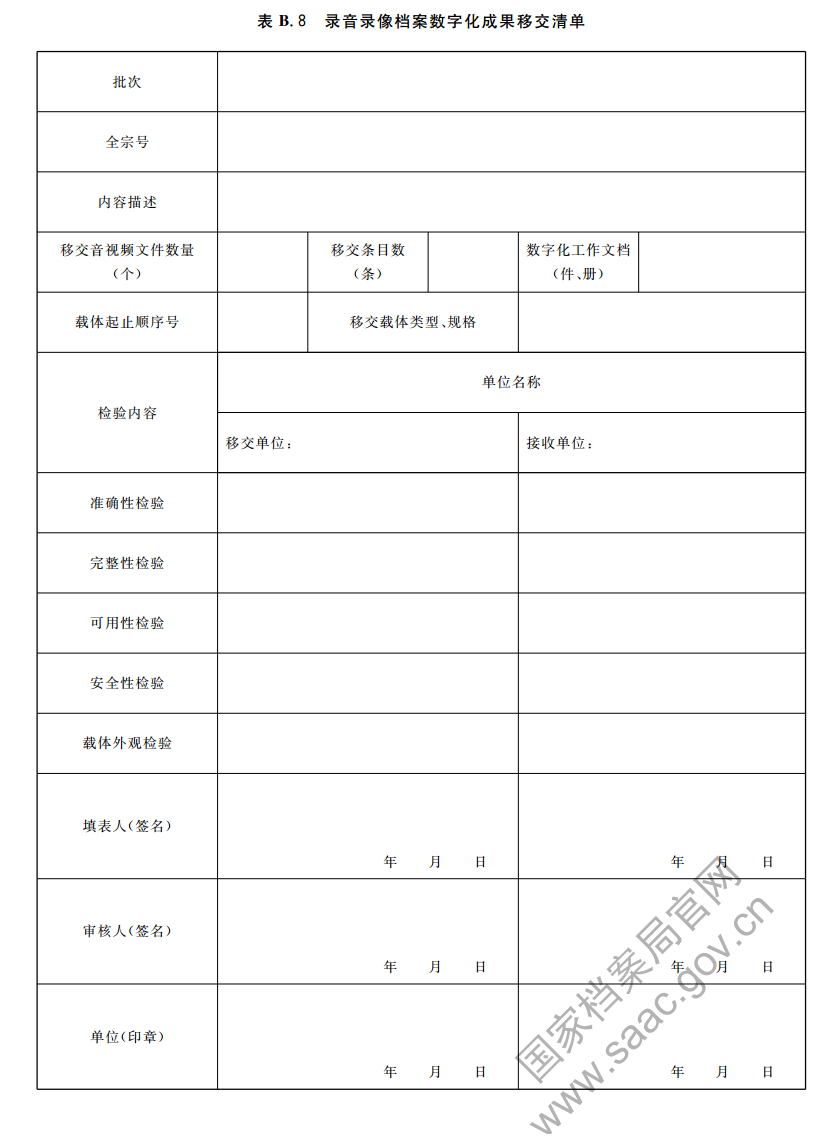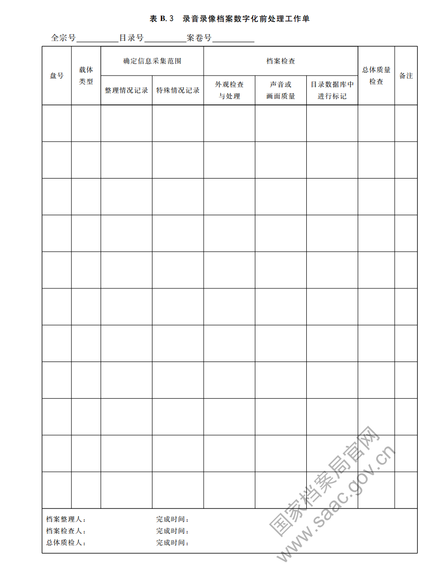 录音录像档案数字化管理登记表示例见表 B.1一B.8。