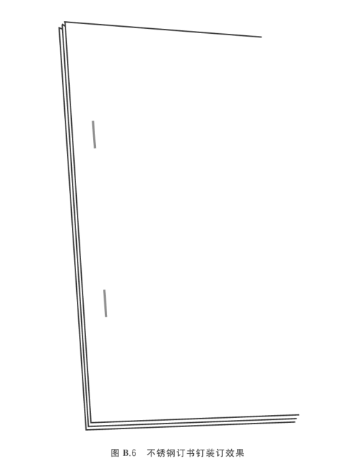 7.5.1 T4不锈钢订书钉装订应在归档文件左侧两钉装订,订位为两钉外订眼距版面上下边缘各7cm为宜(见图 B.6)。