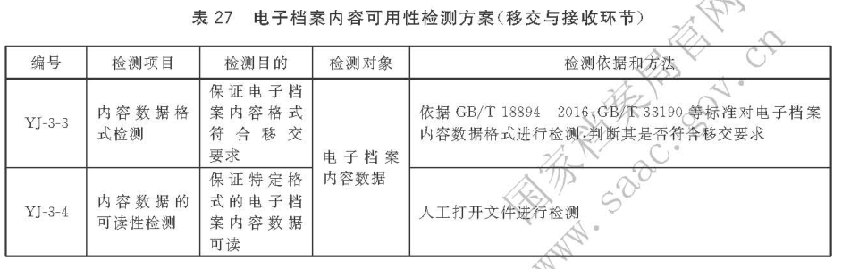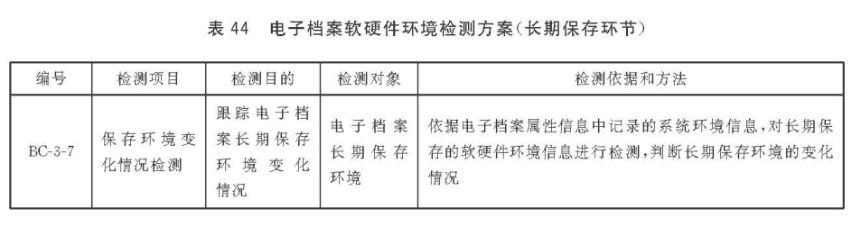 监于归档环节、移交与接收环节,长期保存环节是确保电子档案真实性、完整性、可用性和安全性的关键性环节,因此本标准针对上述环节分别给出检测的内容和方案。