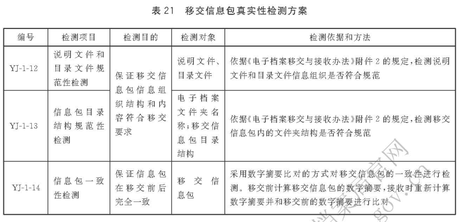 检测电子文件归档信息包的信息组织结构和内容是否符合国家有关规定;检测归档的信息包与业务部门发送的信息包是否一致。