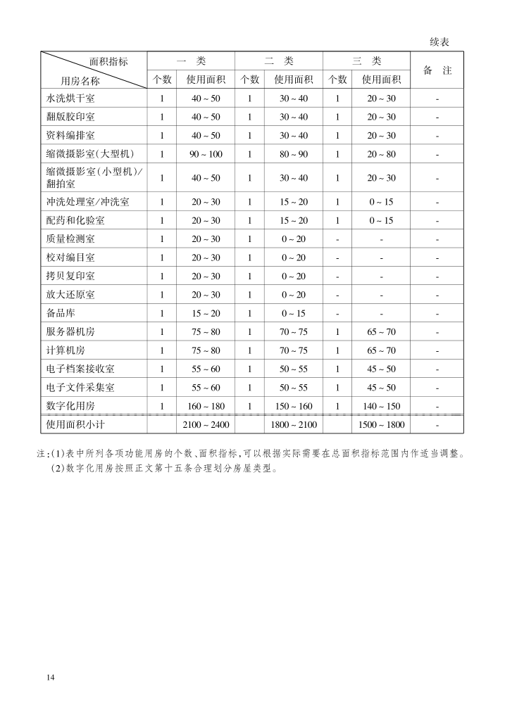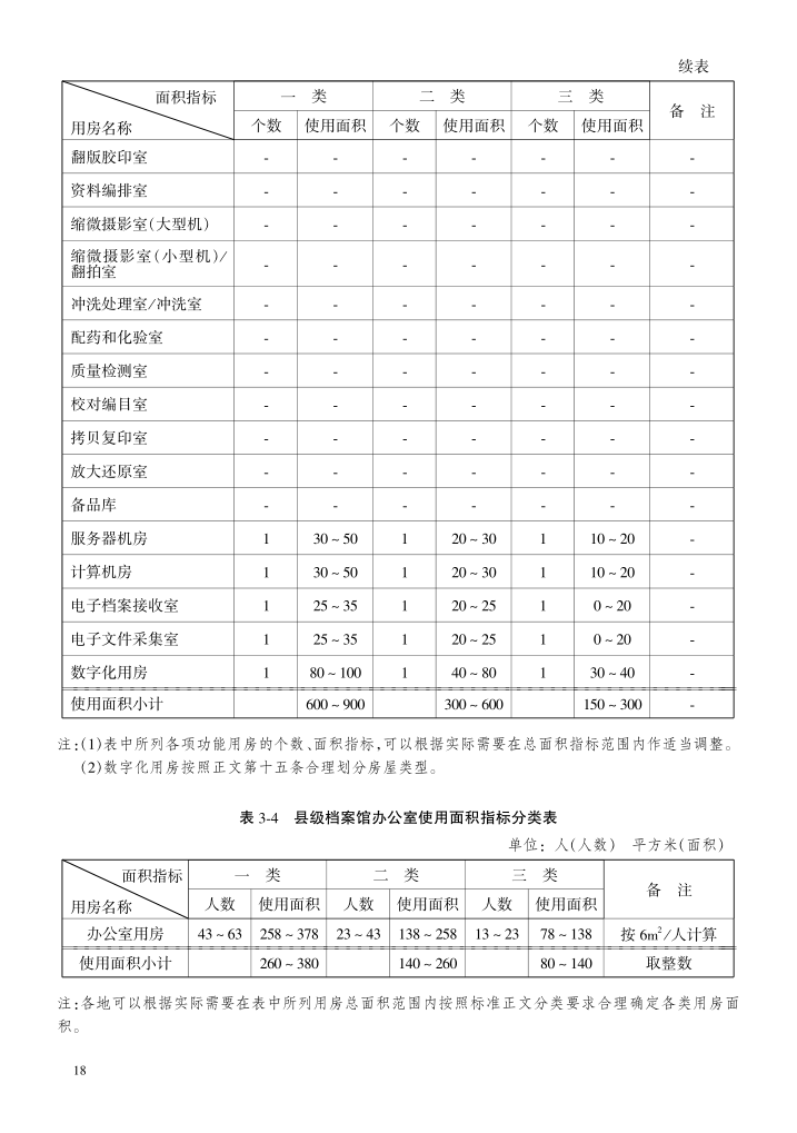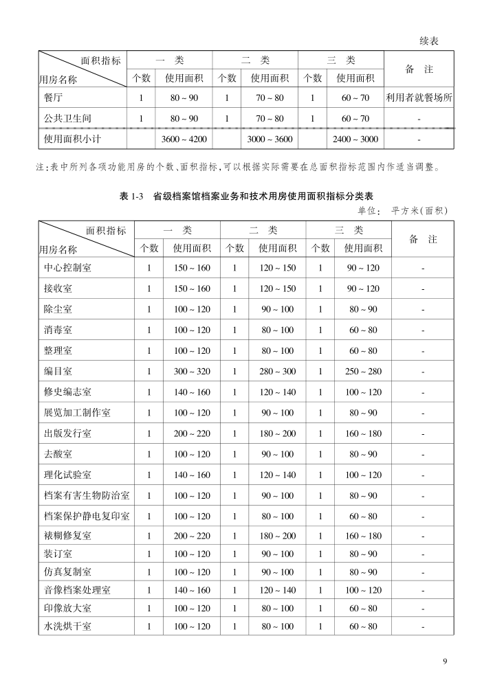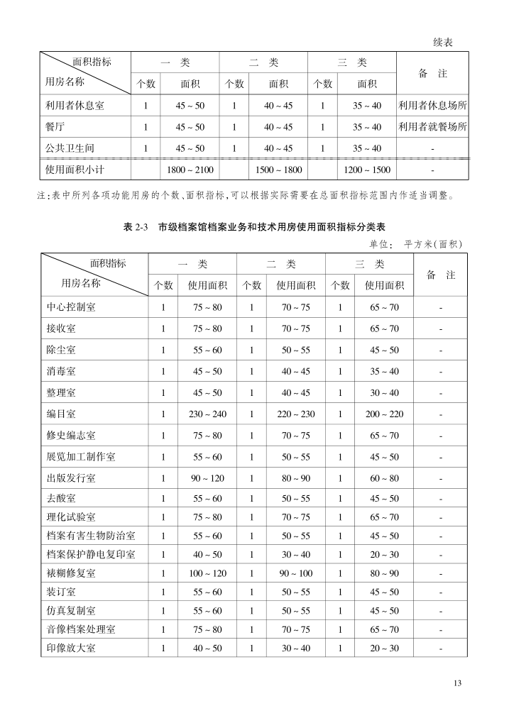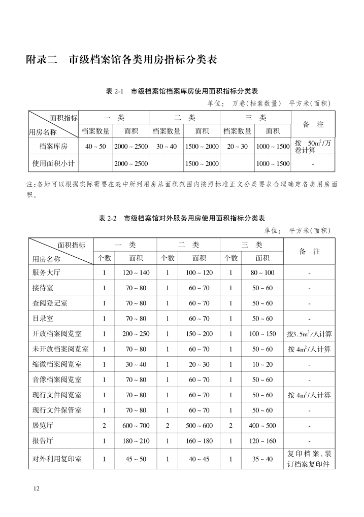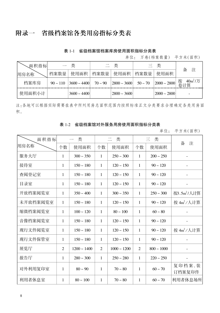 (2)对外服务用房和档案业务和技术用房面积计算方法两类用房存在设备的,根据设备占地面积推算,不存在设备的,依据调研数据给出相应指标。