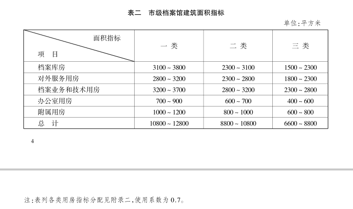 第二十二条 市级档案馆建筑面积指标应符合表二的规定。