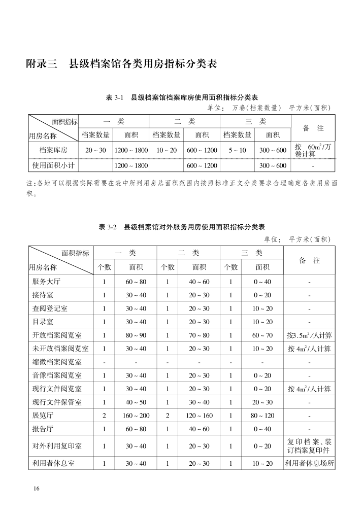 同市级档案馆一样,县级档案馆确定馆藏档案数量最多为20万卷,也是计算需要。因此,在这种情况下,规定可以在县级一类档案馆面积指标的基础上相应增加库房面积是符合实际的。