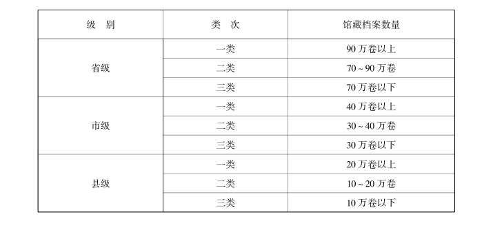 第十条 档案馆建设按照省、市、县三级作如下分类:
