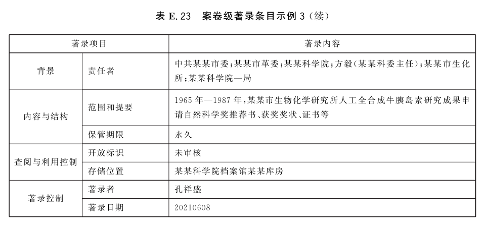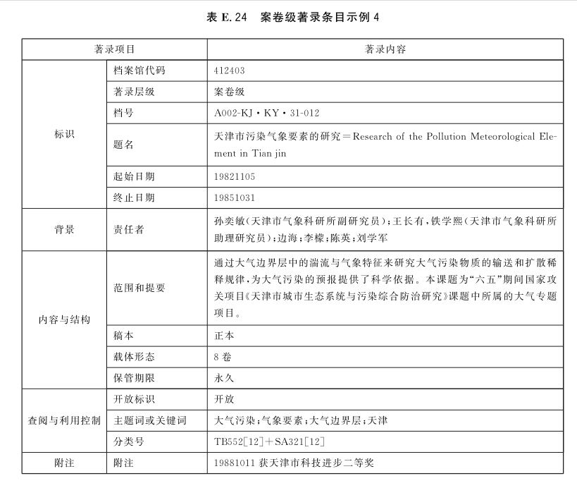 表E.21~表E.25给出了案卷级的著录条目示例。