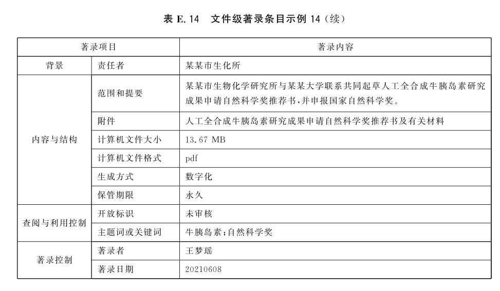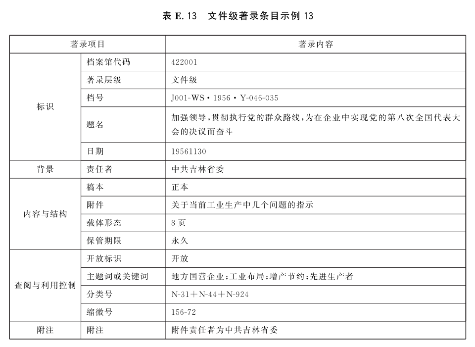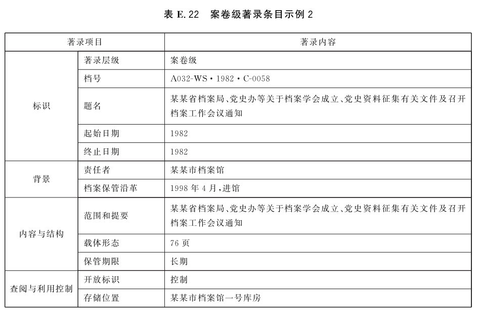 E.2 案卷级著录条目示例