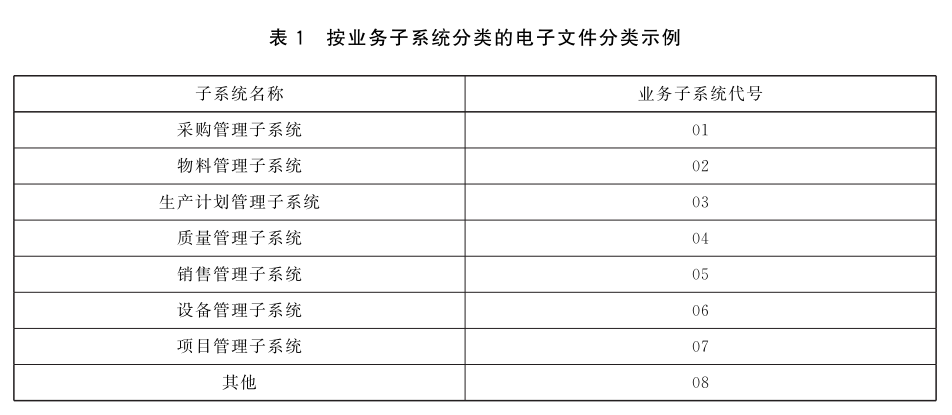 电子文件可按业务子系统、文件类型、年度等实施多级分类。以制造业为例,参照如下规则。