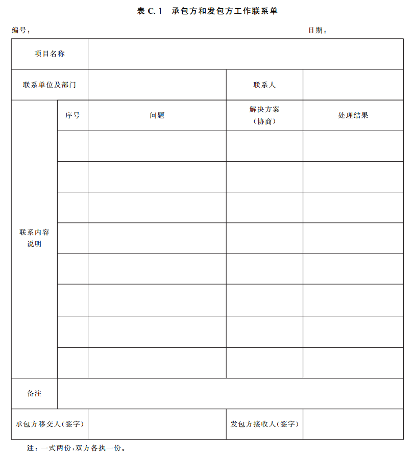 表 C.1 给出了承包方和发包方工作联系单的样式。