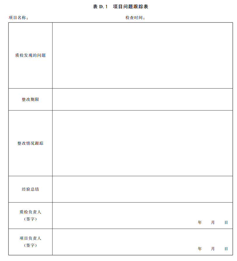5.5.4 承包方在整理服务过程中应建立质检管理机制,落实质检人员,对各操作环节或步骤进行质检, 质检情况可形成项目问题跟踪表(见附录 D)。