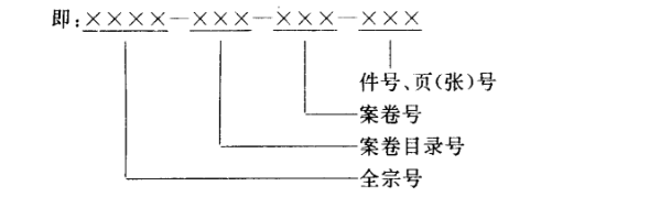 4.1 第一种结构为:全宗号——案卷目录号——案卷号——件、页(张)号。