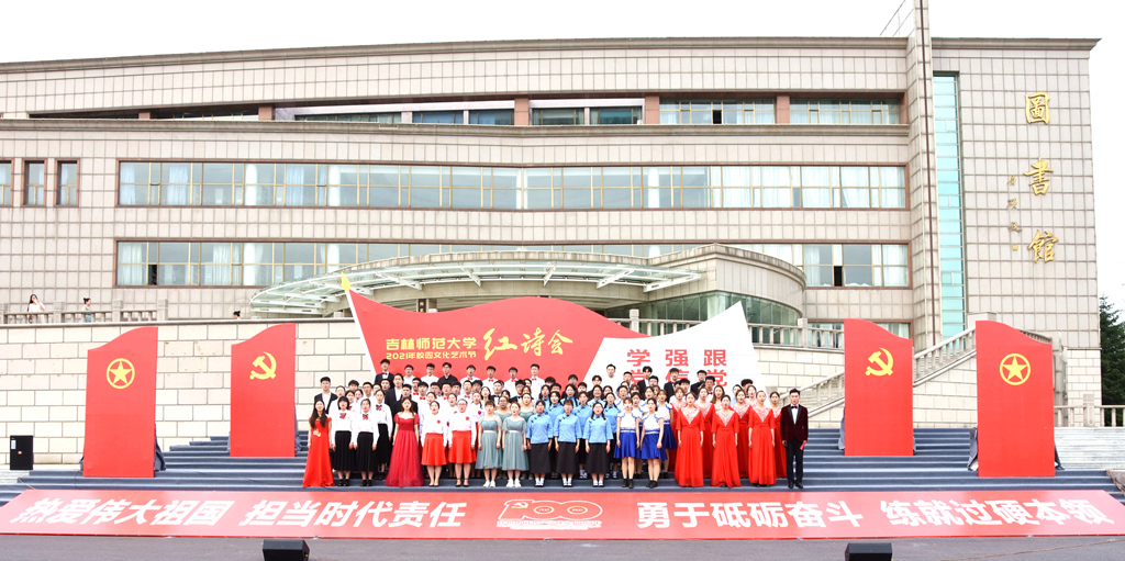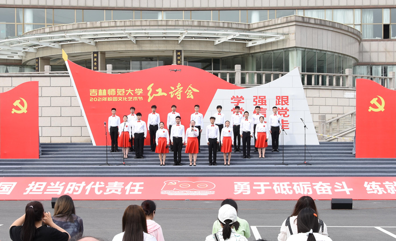 616日,庆祝中国共产党成立100周年校园文化艺术节之“学党史 强信念 跟党走”红诗会总决赛在图书馆前夫子广场举行。学校相关部门负责人、部分师生参加活动。