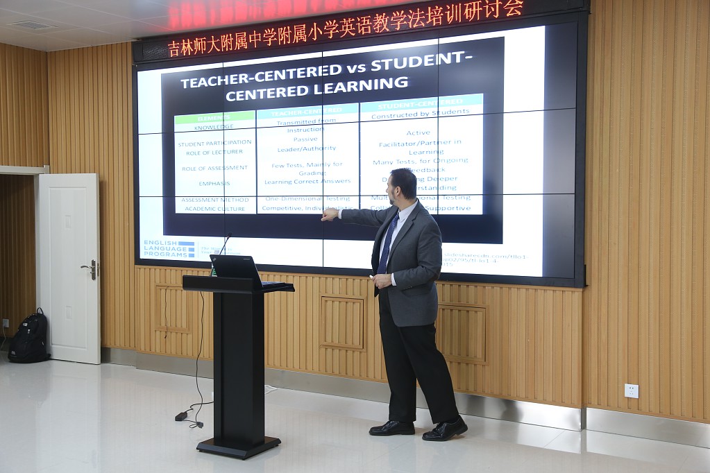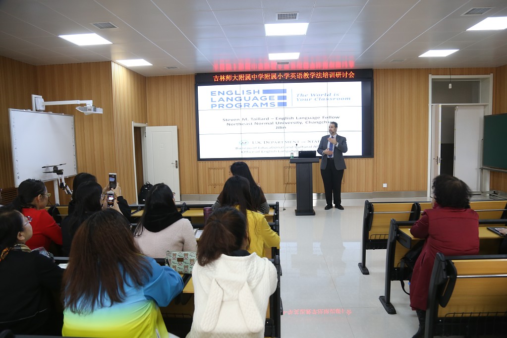 为促进bat365英语教师专业发展,缩短教师成长周期,提高教师育人水平,整体提升教育质量,10月14日,bat365诚邀东北师大外籍教授Steven,做了两节关于“结合中西方教学方式,实现高效教学”(英文)的专题讲座。讲座在中学楼阶梯教师举行,中小学全体英语教师及部分其它学科教师参加讲座。