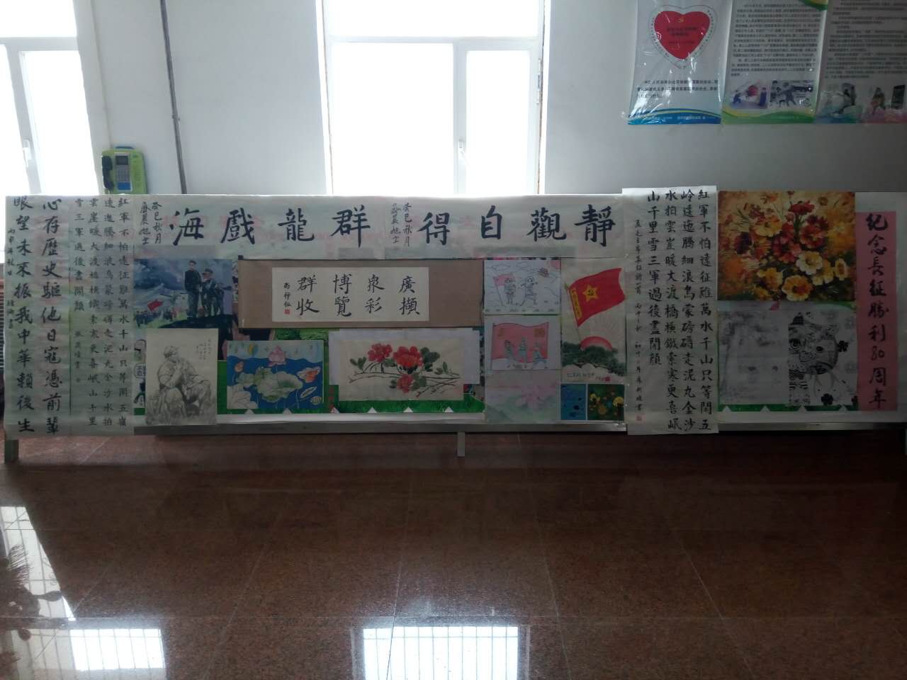 在教学楼内橱窗里宣传红军长征事迹,让学生们真实了解中国历史上的这一段的故事,感受今天的生活是多么的来之不易的,激发学生珍惜今天,珍惜生活,珍惜命运的思想。