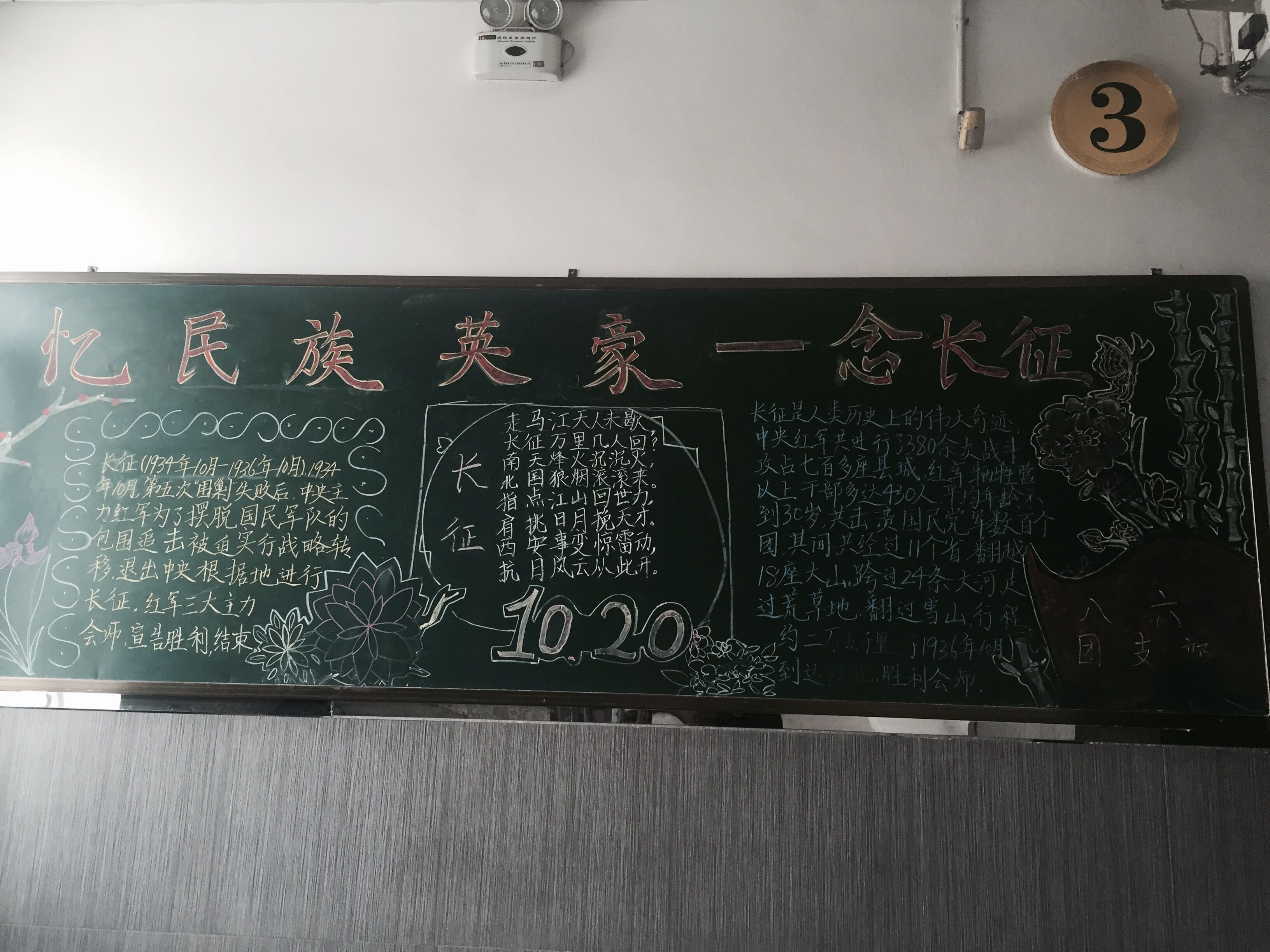 精心绘制反映长征故事、长征意义的红色黑板报,教育学生要铭记历史,努力学习,热爱祖国,做社会主义合格的建设者和接班人。