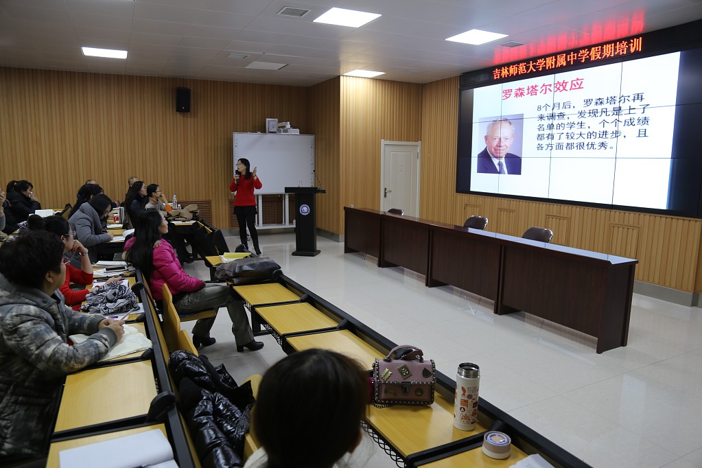 现代教育要求教师应该多了解心理学知识,在对学生的教育中应采用更符合中学生心理特点的教育方式,以此提高工作成效,获得学生爱戴,1月8日下午2:20分,吉林师大附中学生发展促进中心主任程金荣在阶梯教室与大家共同分享了“教师应该了解的心理学效应和实验”。