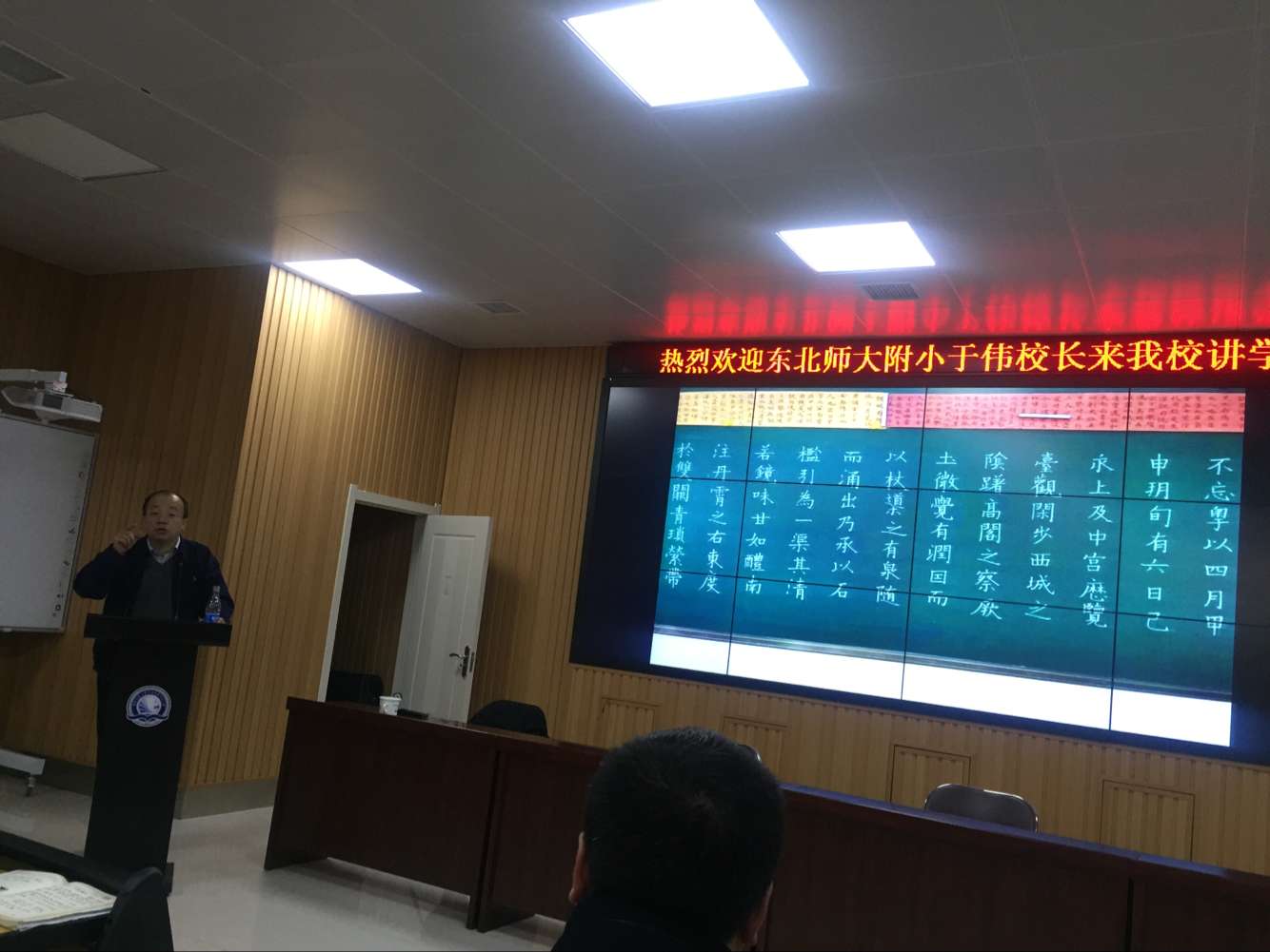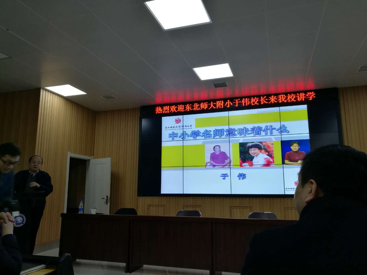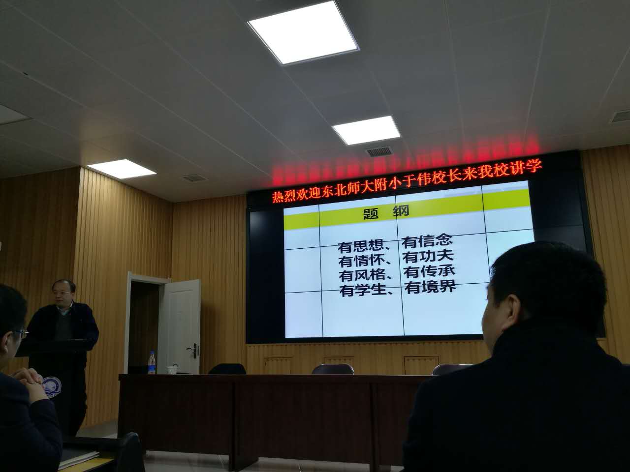 “传道授业解惑,修德启智明理”是附中附小一直秉承的校训,“办人民满意教育”是我们坚持如一的宗旨,在已形成办学风格和特色的同时,为进一步开辟品牌强校之路,1月9日,bat365特邀东北师大附小校长于伟来校作了一堂“中小学名师意味着什么”的讲座。