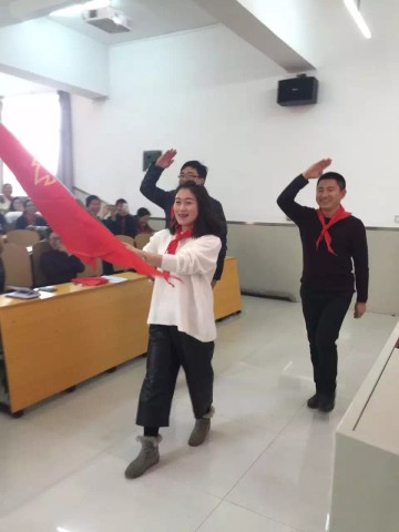 董老师不仅讲解细致,还时常带领全体教师做现场演示。整个培训现场气氛热烈,参加培训的教师积极互动,兴致盎然,使得大家都能在轻松、愉快的氛围中明确如何组织少先队中队会,我们期待下学期精彩队会的展现。