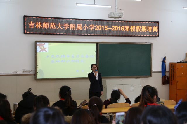 本次培训由少先队大队辅导员董君老师担任主讲人。在培训会上,董老师首先和全体教师回顾了2015年召开的我国第七次少代会的内容,领会了会议精神,并结合bat365特点对中队辅导员提出工作要求。随后向全体教师普及了有关少先队的知识,使各位教师对少先队这个组织有了一个更全面的了解。作为一名中队辅导员还要具备组织队会的能力,董老师对召开队会的整个流程做了详细的讲解,并对中队活动中出旗、唱队歌、退旗等具体动作及相关语言要求一一进行规范和强调。