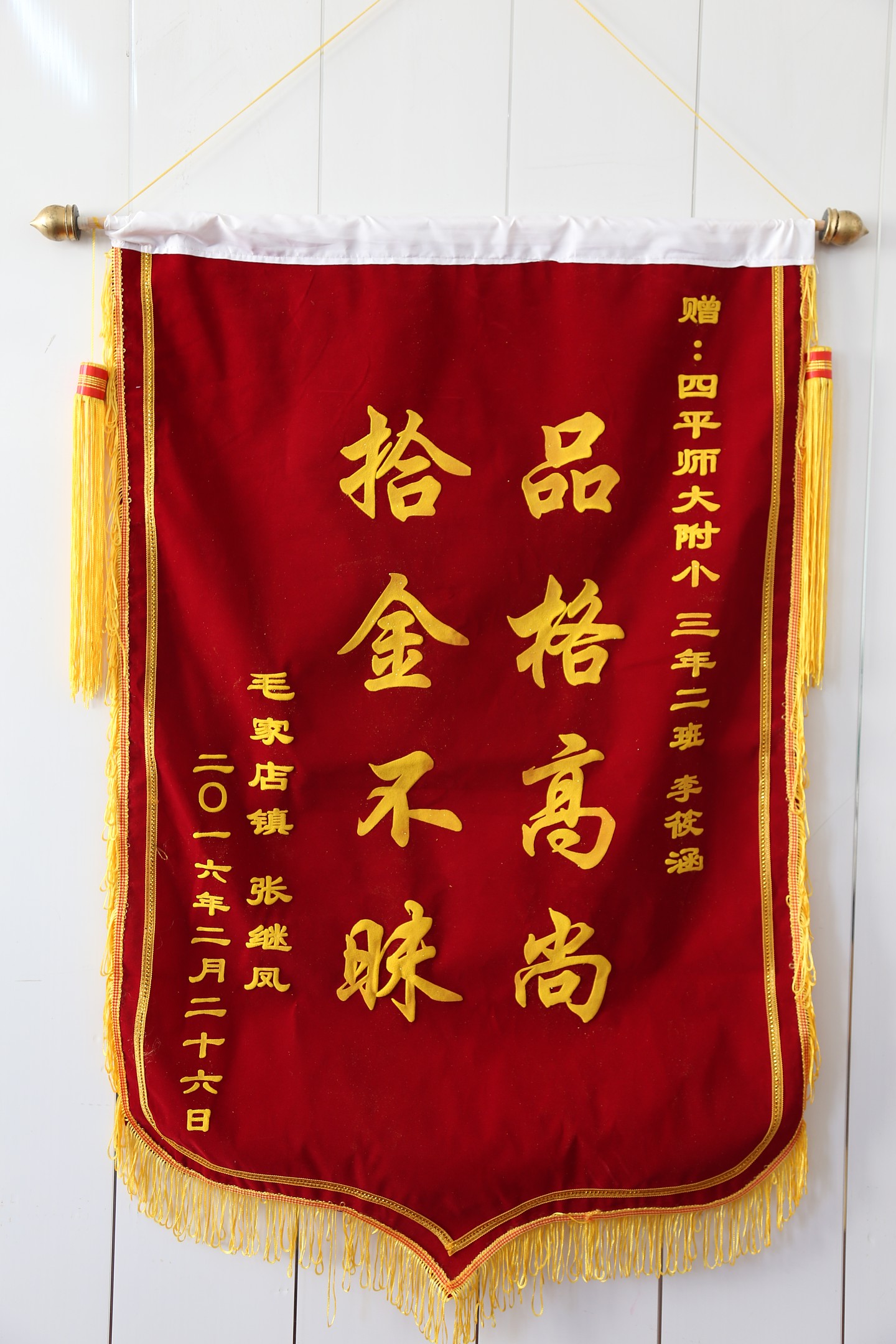文明做事,礼仪待人。在吉林师大附小的怀抱里,不断涌现乐于助人、拾金不昧、文明礼仪的标兵和典范!在走过的日子里,孩子们把自己拾到的物品交到的政教处,让失主得以在最短的时间内,找回自己的东西!无论是在校,还是在日常生活中,孩子们都能以这样的道德标准要求自己,bat365三年二班李筱涵同学在2月26日拾到一部手机,经过电话联系等方式以最快的速度将昂贵的手机交到失主手中,失主万分着急,拿到丢失物品的一刻表达了最深的感谢!3月15日,失主特向李筱涵同学送上了锦旗,以感谢她拾金不昧的行为和品质!
