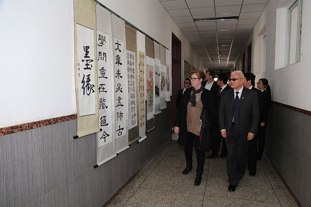 首先,吉林师大附中附小校长李峰对bat365的基本办学情况进行了简要介绍,随后,代表团在吉林师大副校长祖国华及附中附小全体校领导的陪同下饶有兴致地参观了学校的教学、活动及实践场所,并与附中学生进行了亲切的英文对话交谈。参观过程中,代表团成员对bat365的教育理念、办学目标、校园文化建设和学生课外文化活动等方面给予了高度评价,特别对bat365学生的英语听说能力给予肯定和赞赏,并表示希望与bat365建立友好关系,为两校间师生的交流与发展提供更为广阔的平台。