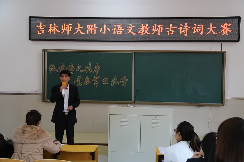 古诗词是中华民族艺术宝库中一颗璀璨的明珠,为进一步弘扬中华民族优秀传统文化,提高语文教师的文化素养,进一步打造书香校园。师大附小于10月22日下午一点在学校综合楼举行了以“汲古诗之精华,蓄教师之幽香” 为主题的古诗词诵读比赛活动。
