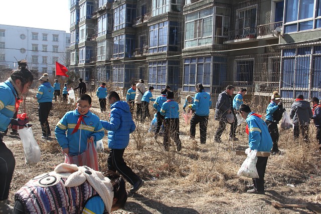 吉林师大附中附小团委、政教处、少先队开展学雷锋系列活动,走进师大社区清扫白色垃圾