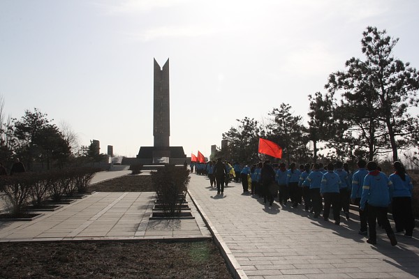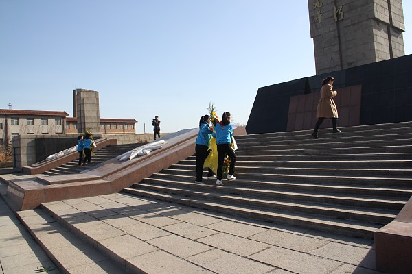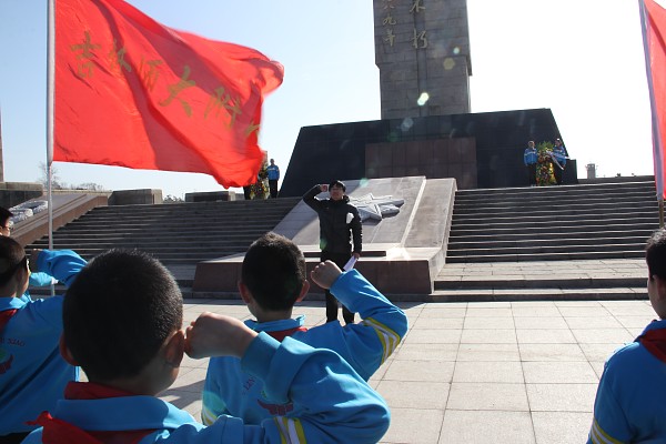 仪式结束后,全体师生进行祭扫和瞻仰活动。看着巍峨的烈士纪念碑,望着两侧石壁上英雄的名字,师生们感慨万千。“青山绿水长留生前浩气,苍松翠柏堪慰逝后英灵。”历史的长河记载了多少英雄的事迹,有多少人为了保卫祖国和家乡献出了宝贵的生命。烈士们走了,但他们的事迹会幻化成永不磨灭的丰碑高高耸立在我们后人的心中。我们不会忘记过去,不会忘记怀念!今天我们来到这里祭扫革命烈士墓,缅怀革命先烈,必定将那烈士们用鲜血染红的国旗永远传递下去!